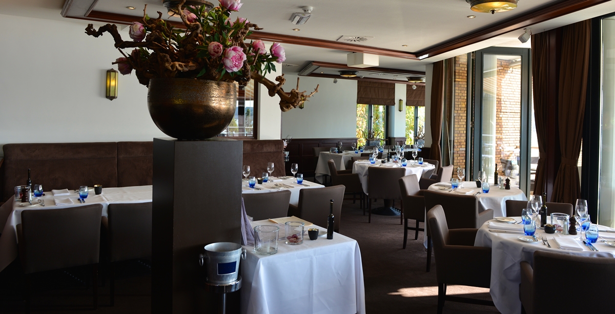 De warme kleuren, het linnen op tafel en het uitzicht over de Oude Maas en het oude Dordrecht zorgen voor een stijlvolle en intieme sfeer. Hier kunt u in alle rust, met meer privacy, genieten van een lunch of diner.